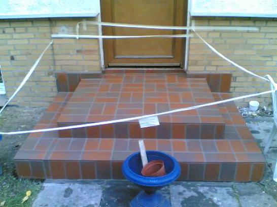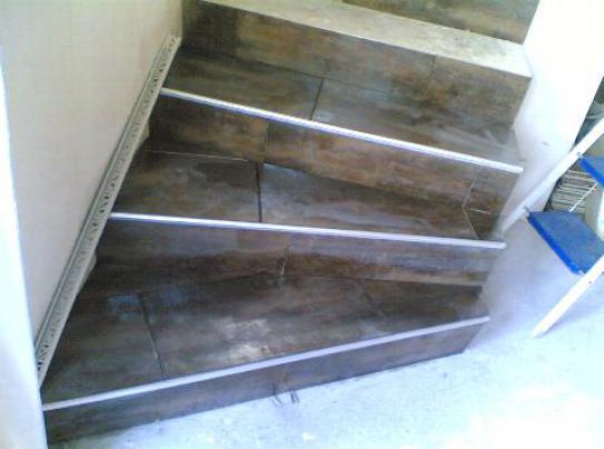 Geflieste Treppenstufen mit Edelstahlkanten. Unverfugt.